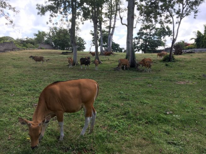 朝の散歩をしていると野放しの牛の群れに遭遇したり、