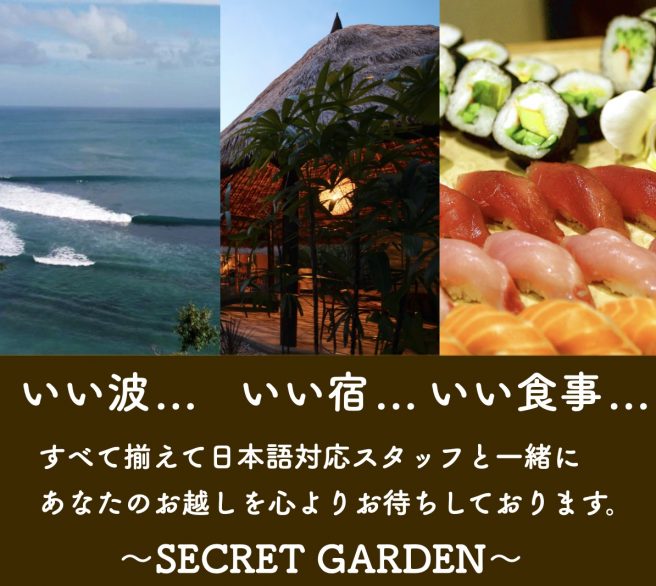下記よりSECRET GARDEN宿泊&サーフガイドの予約を承っています。
