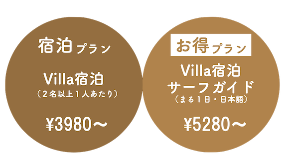 SECRET GARDENでは宿泊とサーフガイド込になったお得なプランをご用意しています。