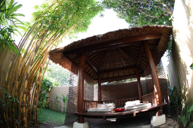 疲れた体を癒やすためのマッサージはこちらの伝統的なガゼボ(あずまや)で提供しています。